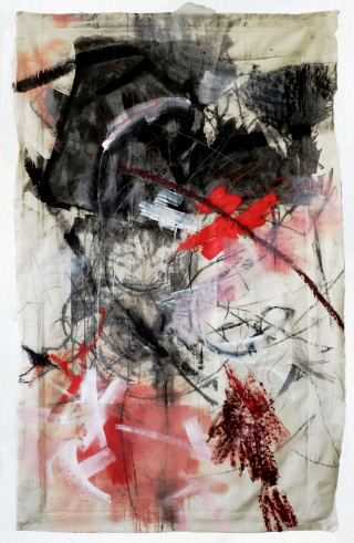 During the working process, passive materials react to the active manipulation of materials upon them; both the passive and active elements are equally and reciprocally important to the process as well as to the finished work. Using and mixing different media in one work creates a rich context in which the tension between marks that are made with body gestures and those made with different degrees of technological intervention can be explored.