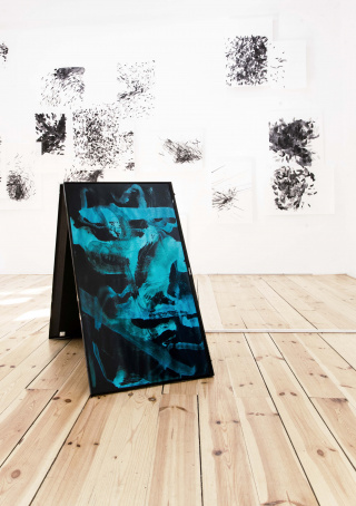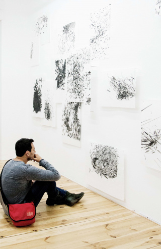 The fragility of the ink-infused rice paper work in particular stands in sharp contrast to the industrial robot used to create them. As with Japanese calligraphy (the reference is obvious and undeniable), the brush trajectories and the ink’s behaviour as it penetrates the surface are here of several magnitudes more importance than the perception of the object itself.