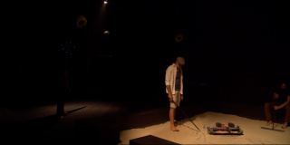 Open Closed Open is a multimedia installation that explores a multitude of perceptual positions realized as a result of the continual movement of organic materials. Sand, light and human voice are shaped by a layer of technological interventions that impose varying degrees of control and predetermined roles upon both themselves and the resulting response of the materials.