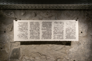 “The Torah Is My Dataset and Machines Are My Prophets" (2023) done in collaboration with Daniel Berio, comprises a series of plotted pencil and pen drawings programmed based on text analysis and generation algorithms developed by the hacker V.Nos, (Black Hole Consulting) under Grayver concept development and artistic curation. Inspired by Kaballah mysticism and using the ancient Jewish numerical system of Gematria (a system of assigning numerical values to letters in an alphabet, typically for the purpose of uncovering hidden meanings and connections within words, phrases, and texts. It is often used in Jewish mystical traditions, particularly within Kabbalah). The algorithm seeks to encipher the Torah Code and uncover prophetic texts that are then visualized with a highly abstracted cypher of asemic glyphs.