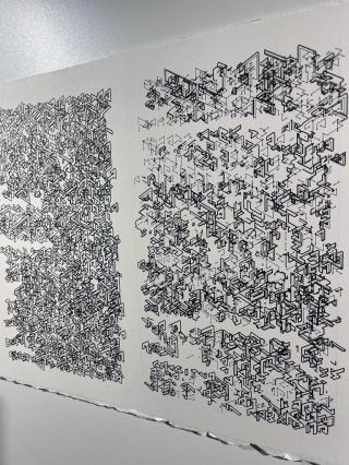 The result is finally drawn on paper with ink using a pen plotter. By visualizing the texts using machine-plotted lines, the artwork seeks to represent the balance between order and chaos, reflecting the human desire to find patterns and assign meaning as a form of control. The decision to keep the work abstract is intended to avoid the subjectivity and locality that written text can evoke and instead point to the underlying structure that holds our set of beliefs together. The resulting artwork is thought-provoking and invites deep contemplation and interpretation of how human beliefs are influencing the creation of contemporary and historical knowledge.
