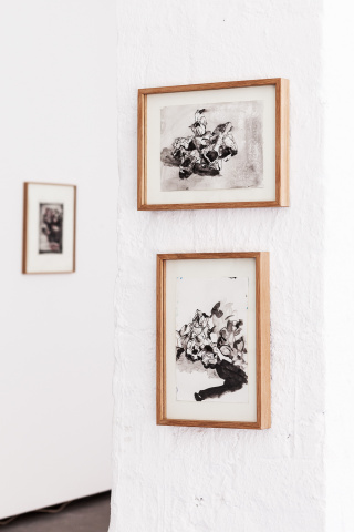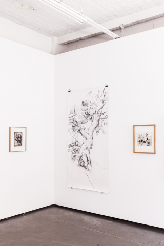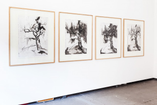 Looking for a platform to articulate human gesture, I noticed this tree on the Saale river bank in Jena while participating in the Plenair residency programme in Jena. Over the course of a week, I made several paintings and drawings of its form. This particular tree, in its almost ornately moving form, seems to me like the shape of an Indian temple dancer, an association that I have taken as inspiration.